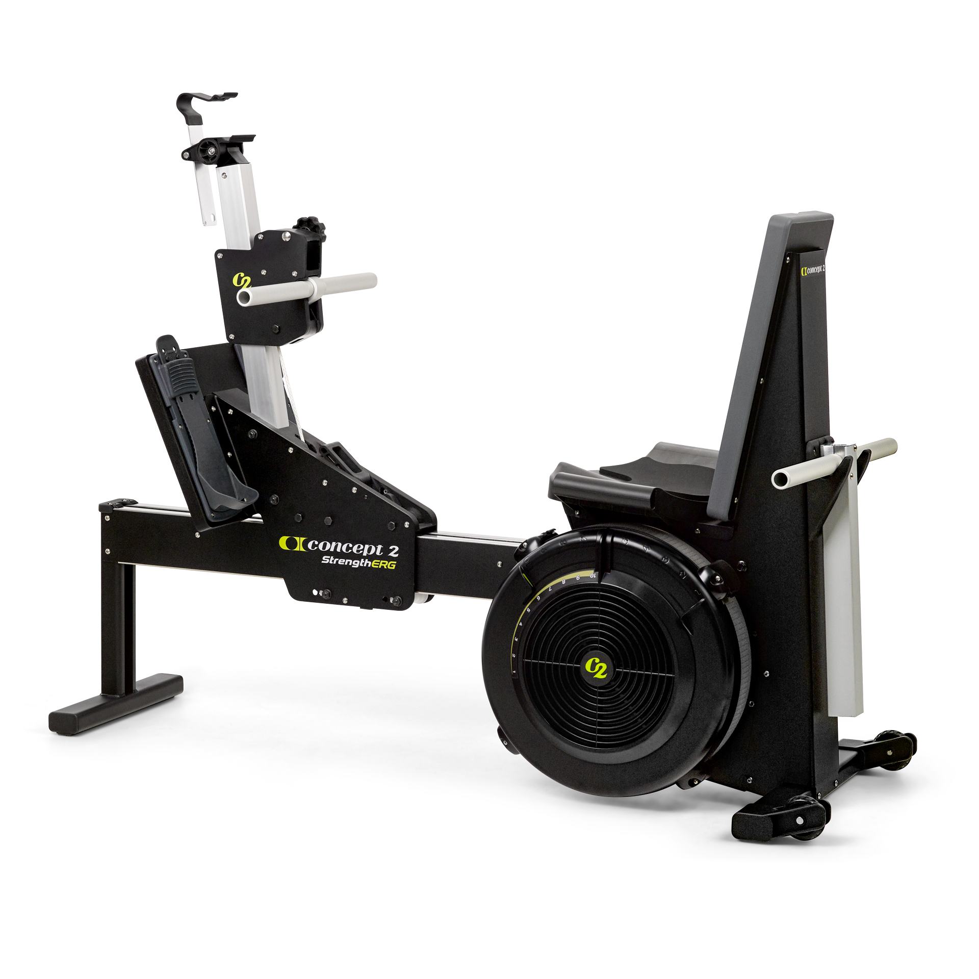 The StrengthErg is powered by Concept2’s signature flywheel technology, which can be varied in intensity depending on the combination of the damper setting and the amount of effort the user produces. The responsive nature of air resistance results in a variable load depending on the user’s strength. A lower damper setting, or less air resistance, produces a lighter feel when pressing or pulling. A higher damper setting, or more air resistance, produces a heavier feel when pressing or pulling.